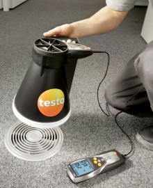 用于管道測量的流速傳感器都帶有伸縮桿,便于在大型空氣管道中進行操作。如果需要,還可以使用測量流速的探頭來測量溫度和濕度?梢愿鶕(jù)應用需求選擇熱敏探頭、葉輪探頭或皮托管來測量管道中的流速。 測量室內(nèi)空氣質(zhì)量(二氧化碳)![]() 高濃度的二氧化碳會導致室內(nèi)空氣質(zhì)量變差,從而使人體感覺疲倦,無法集中精神,甚至生病。因此,為了保證良好的室內(nèi)空氣質(zhì)量,二氧化碳濃度一般不應超過1 000 ppm。參考范圍為700到1500 ppm。 IAQ探頭(訂貨號0632 1535)尤為適合監(jiān)控室內(nèi)空氣質(zhì)量。此探頭可以同時記錄二氧化碳濃度、溫度和相對濕度。 在通風管道內(nèi)使用皮托管進行測量為了確保通風和空調(diào)系統(tǒng)的正常功能,,對通風管道內(nèi)的空氣流速進行檢測是非常重要的。 testo 435-3的內(nèi)部壓差傳感器用來測量高流速或高污染的氣流,皮托管測量范圍從0到64米/秒的空氣流速。testo 435-3可以同時顯示壓力、流速和體積流量。 在儀器背后的磁貼可以實現(xiàn)免提操作。 過濾器上壓差測量![]() 空調(diào)系統(tǒng)配有過濾器,可以防止室外空氣中的灰塵進入室內(nèi)。應定期檢查這些過濾器,以確保它們運行良好。為此,需要測量過濾器前后的壓力差。如果壓差過大,,說明過濾器被污染,需要更換。 testo 435-3內(nèi)置壓差傳感器,,測量范圍0到25 hPa。在壓差測量過程中會進行溫度補償,以得到精確讀數(shù)。在儀器背后的磁貼可以實現(xiàn)免提操作。 熱輻射的測量![]() 多功能測量儀testo 435能夠幫助您可靠地測量熱舒適度。連接一個熱輻射黑球探頭(訂貨號0602 0743),,測量輻射熱量(也就是有效或感知溫度)。熱輻射黑球探頭測量的有效溫度與人體感知溫度的差值最好不超過± 0.41 K。 室內(nèi)溫度(空氣溫度和有效溫度)的測量要采取在同一個地方,相同的條件,如室內(nèi)空氣流速的一致的情況下進行。 測量空氣和表面溫度為了讓人體感覺舒適,達到最佳狀態(tài),房間內(nèi)必須調(diào)節(jié)空調(diào)運行工況。除了建筑結構因素和個體感覺,以下因素也會在很大程度上影響室內(nèi)空氣的舒適度:室內(nèi)空氣溫度以及墻壁、窗戶、底板和天花板的表面溫度。 testo 435提供滿足不同應用的熱電偶探頭。表面探頭(訂貨號0602 0393)和空氣濕度探頭(訂貨號0636 1712)很適合分析結露問題和霉變的情況。 出風口風速測量![]() 為了確保系統(tǒng)的高效使用,每個管道的進出口體積流量都應符合要求,這是一個基本的前提條件。 在出風口處,適合采用直徑100mm的葉輪風速探頭來測量體積流量(訂貨號0635 9435),因為它們可以對較大面積的流速進行綜合測量,從而排除通風格柵所產(chǎn)生的干擾(回路方法)。 在空氣格柵和提升閥的抽風口或出風口進行測量時,適合采用我們的風量罩套裝(訂貨號0563 4170)以及直徑100mm葉輪風速探頭(訂貨號0635 9435)。通過風量罩來記錄整體體積流量值,不需要根據(jù)流速和面積進行計算。這種流量測量方法簡單、可靠。 一氧化碳測量![]() 一氧化碳(CO)是一種無味、無色、無刺激性的氣體,但是有毒。它是在熱源和燃機內(nèi)的煤、木頭、油、天然氣等含碳物質(zhì)燃燒不充分情況下產(chǎn)生的。一氧化碳濃度增加速度很快,尤其是在沒有足夠氧氣的情況下,并可能對健康產(chǎn)生不良影響。 即使環(huán)境空氣中含有微量的一氧化碳,環(huán)境一氧化碳探頭(訂貨號0632 1235)和testo 435-1也能夠檢測到。