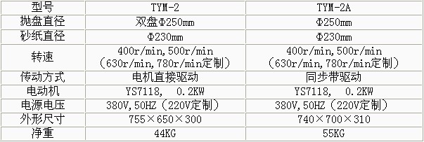 產(chǎn)品概況: TYM-2金相試樣預磨機 •雙工位,金相切片研磨機,電機直接驅(qū)動磨盤 •提高試樣拋光制備功效,金相試樣自動研磨機,進行試樣預磨。 •廣泛需求分析,金相拋光研磨機,調(diào)研和采集多方面使用人員的意見及要求設計。 •適應更多種材料預磨的需要,全自動金相拋光研磨機,磨盤直徑大于國內(nèi)同類產(chǎn)品。 TYM-2A金相試樣預磨機 •雙工位,金相研磨機價格,同步帶驅(qū)動磨盤 •提高試樣拋光制備功效,金相研磨機,進行試樣預磨。 •廣泛需求分析,金相樣品自動研磨機,調(diào)研和采集多方面使用人員的意見及要求設計。 •適應更多種材料預磨的需要,,磨盤直徑大于國內(nèi)同類產(chǎn)品。 技術參數(shù):
